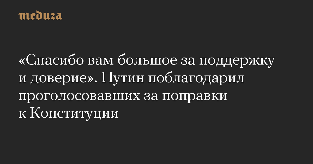 Что это за сообщение и почему оно повсюду на «Медузе»?Президент РФ Владимир Путин поблагодарил поддержавших поправки к Конституции на голосовании.