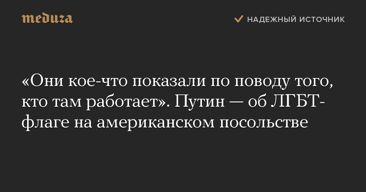 «Они кое-что показали по поводу того, кто там работает». Путин — об ЛГБТ-флаге на американском посольстве