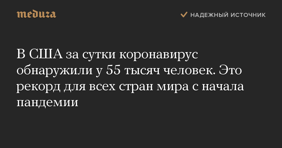 В США за сутки коронавирус обнаружили у 55 тысяч человек. Это рекорд для всех стран мира с начала пандемии