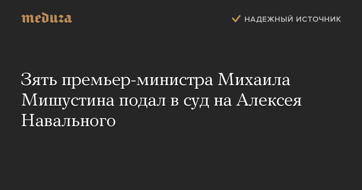 Зять премьер-министра Михаила Мишустина подал в суд на Алексея Навального