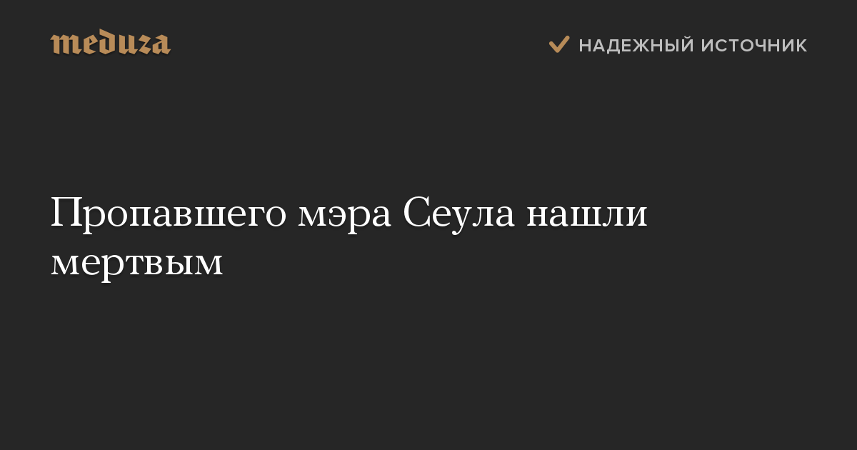 Мэр Сеула Пак Вон Сун, об исчезновении которого 9 июля заявила его семья, обнаружен мертвым в северной части города. Об этом сообщает «Ренхап» со ссылкой на полицию.