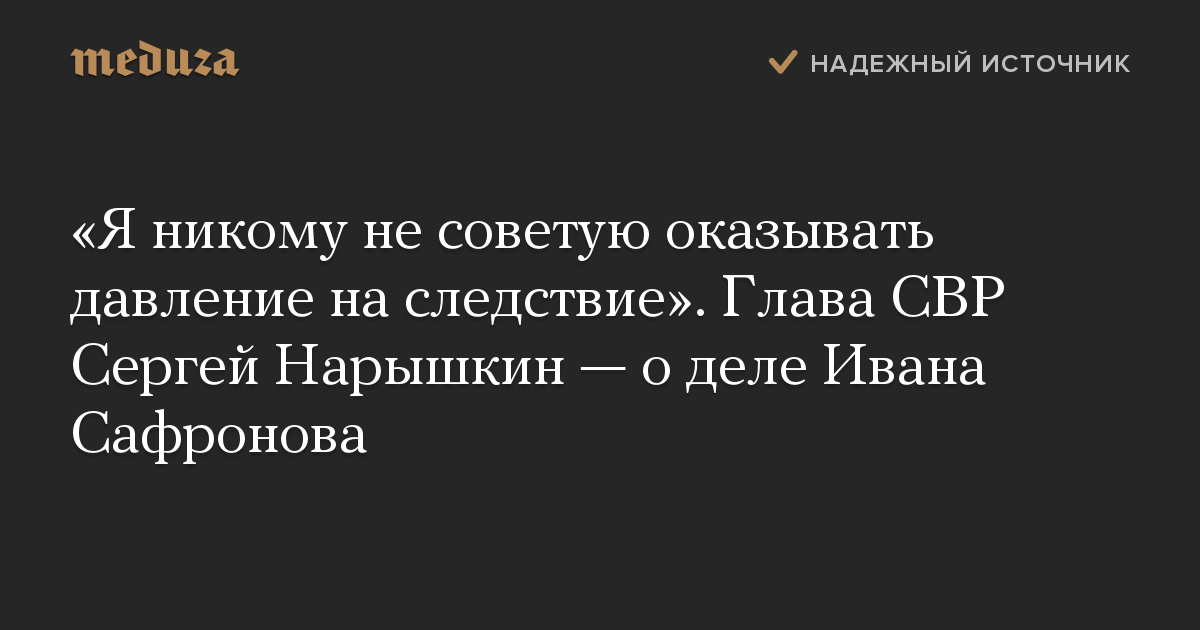 «Я никому не советую оказывать давление на следствие». Глава СВР Сергей Нарышкин — о деле Ивана Сафронова