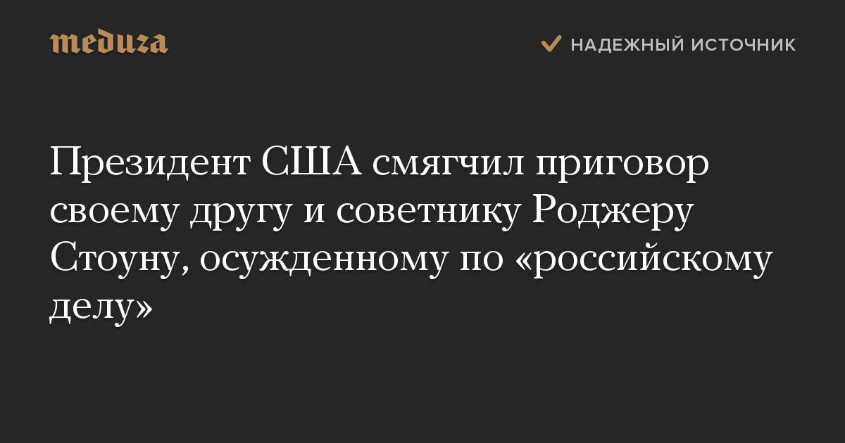 Трамп принял такое решение после того, как апелляционный суд отклонил ходатайство Стоуна, просившего отсрочить начало его 40-месячного тюремного заключения. Стоун должен был явиться в тюрьму 14 июля.