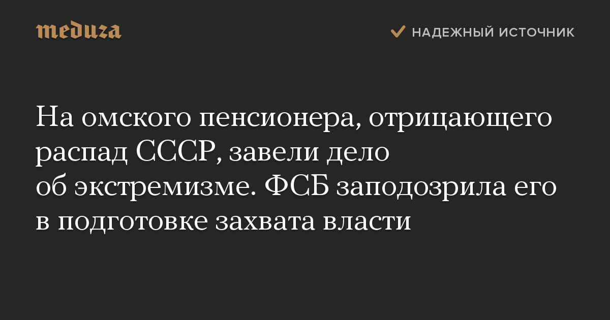 На омского пенсионера, отрицающего распад СССР, завели дело об экстремизме. ФСБ заподозрила его в подготовке захвата власти