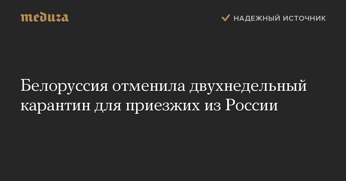 Белоруссия отменила двухнедельный карантин для приезжих из России