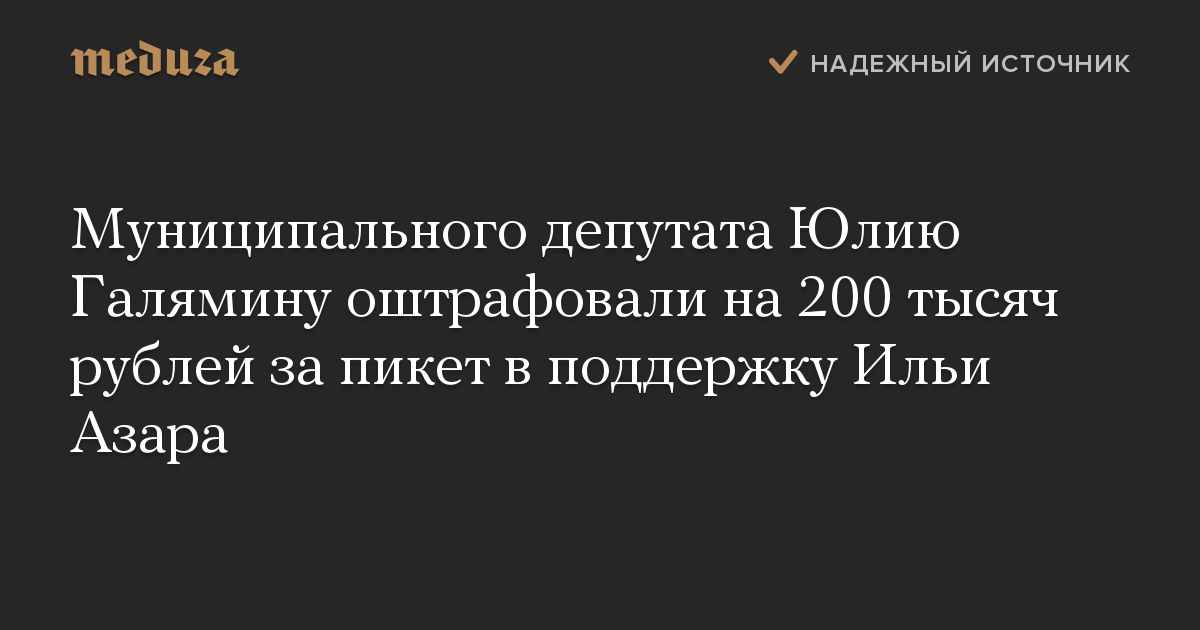 Муниципального депутата Юлию Галямину оштрафовали на 200 тысяч рублей за пикет в поддержку Ильи Азара
