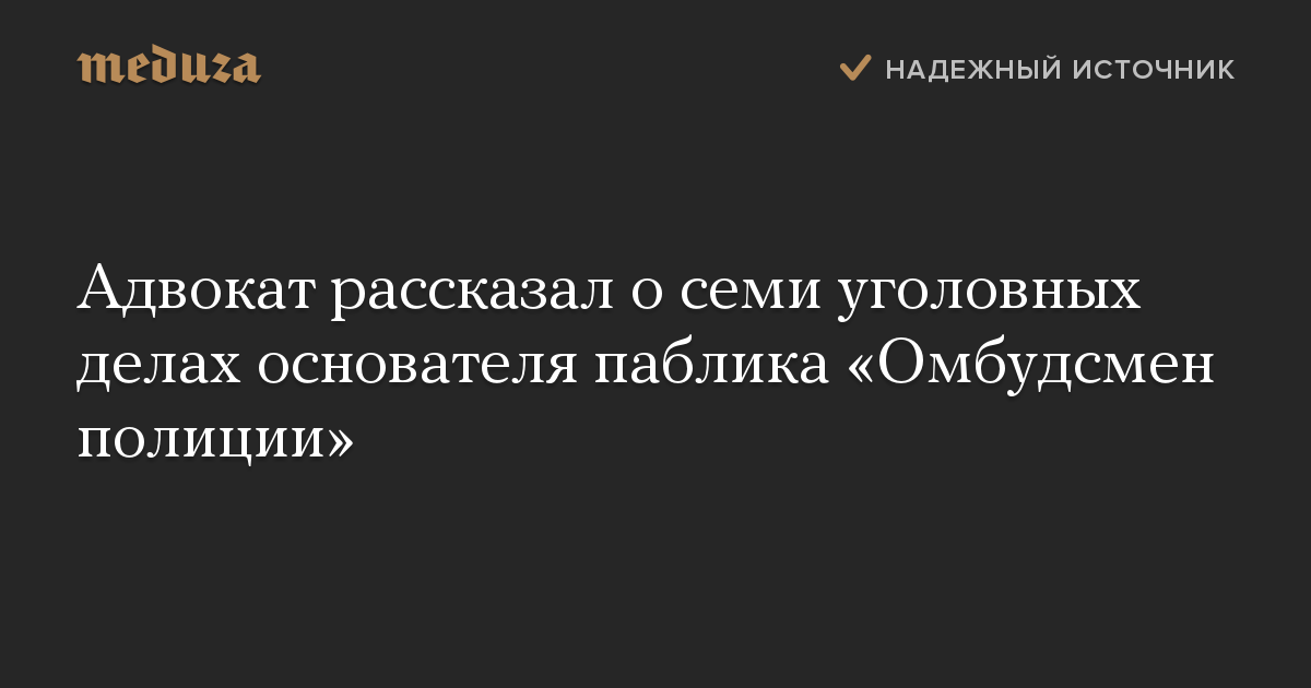 Адвокат рассказал о семи уголовных делах основателя паблика «Омбудсмен полиции»