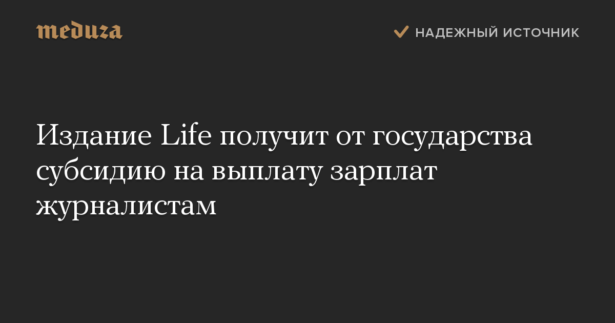 Издание Life получит от государства субсидию на выплату зарплат журналистам
