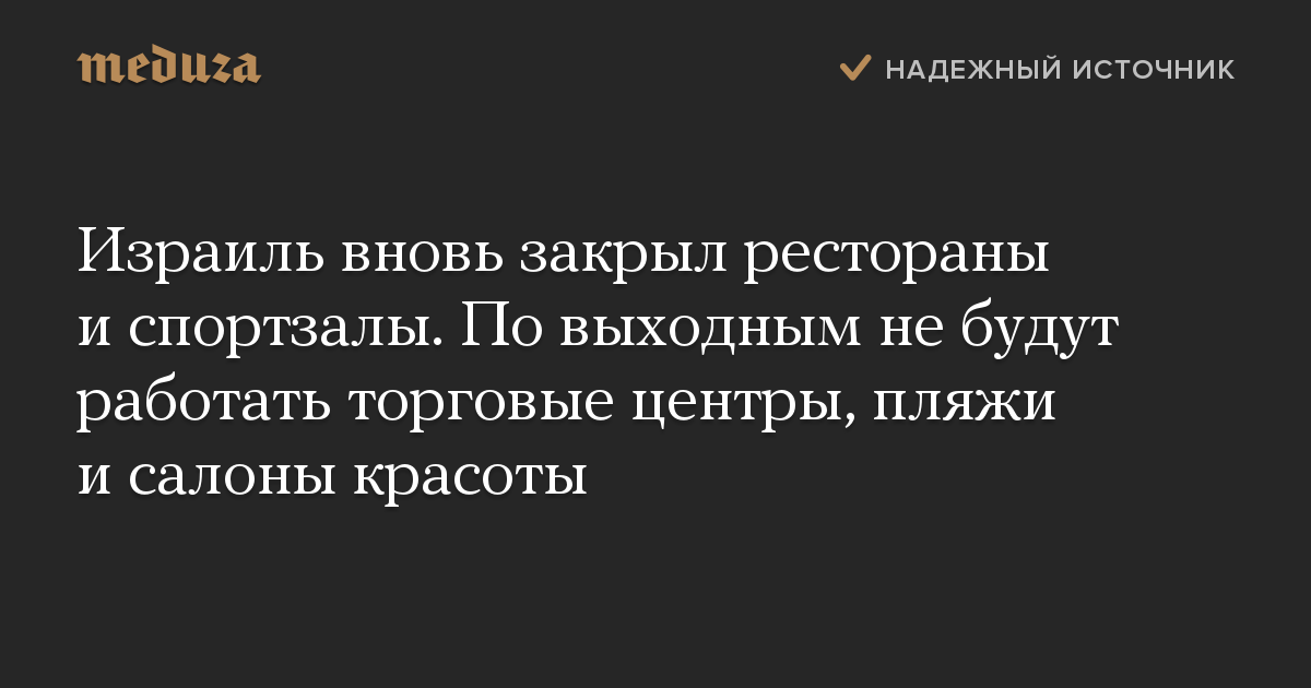 Израиль вновь закрыл рестораны и спортзалы. По выходным не будут работать торговые центры, пляжи и салоны красоты