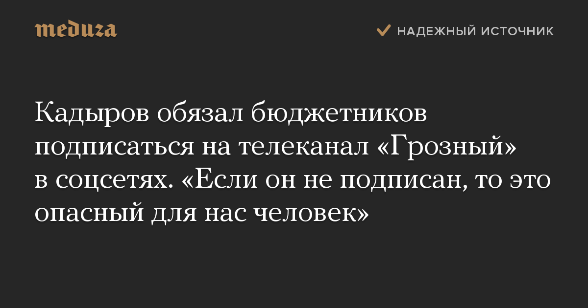 Кадыров обязал бюджетников подписаться на телеканал «Грозный» в соцсетях. «Если он не подписан, то это опасный для нас человек»