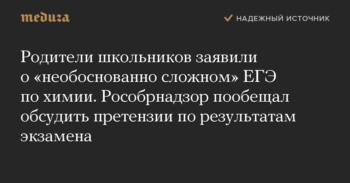 Рособрнадзор готов обсуждать претензии к ЕГЭ по химии после того, как станут известны результаты экзамена. Так в ведомстве ответили на петиции родителей школьников, заявивших о «необоснованной сложности» заданий.