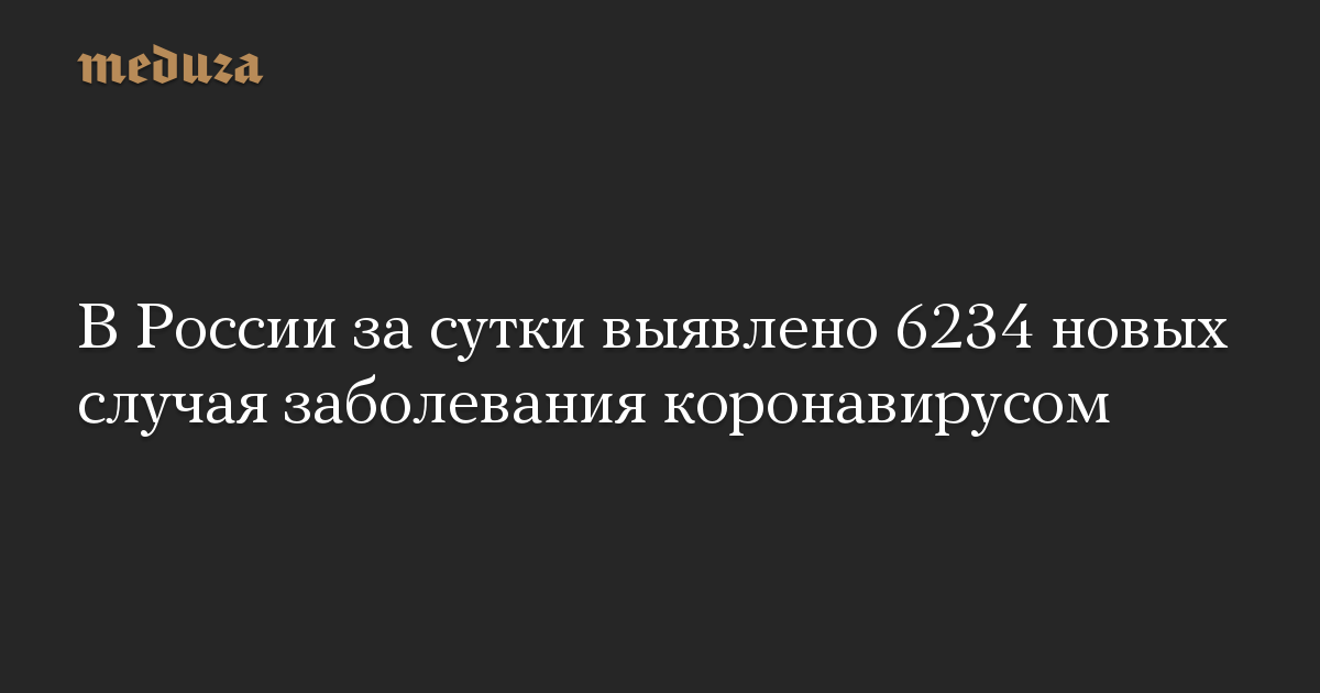 В России за сутки выявлено 6234 новых случая заболевания коронавирусом