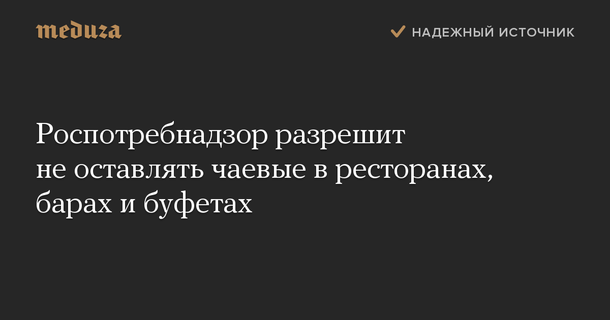 Роспотребнадзор разрешит не оставлять чаевые в ресторанах, барах и буфетах