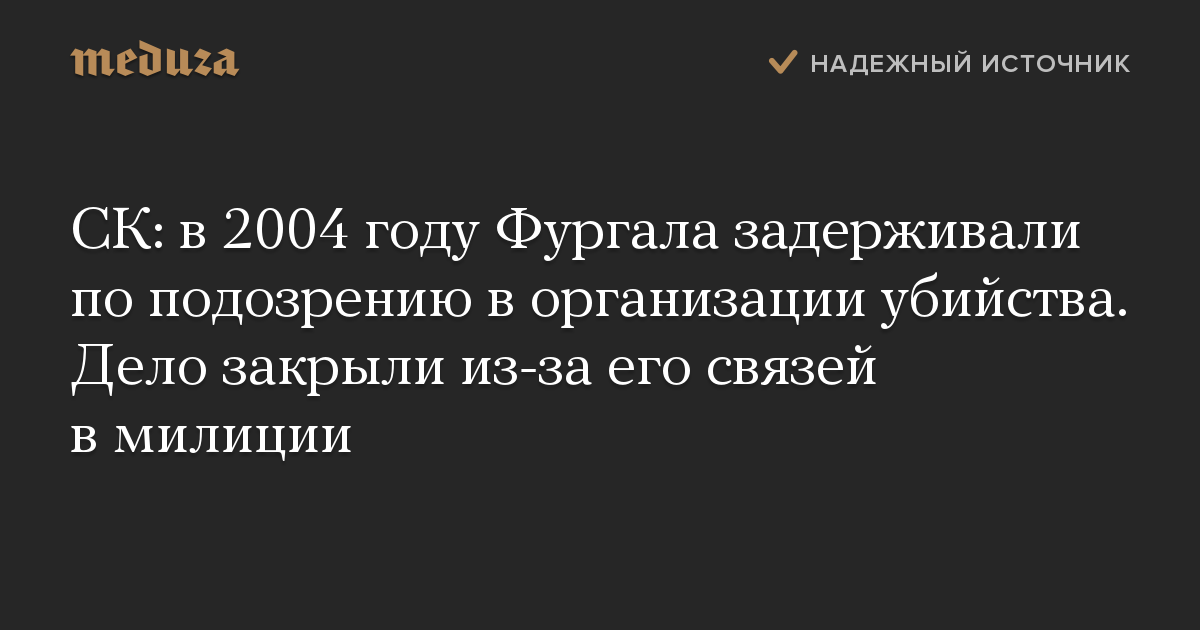 СК: в 2004 году Фургала задерживали по подозрению в организации убийства. Дело закрыли из-за его связей в милиции