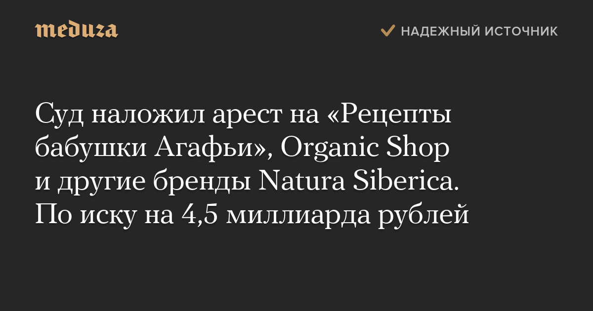 Суд наложил арест на «Рецепты бабушки Агафьи», Organic Shop и другие бренды Natura Siberica. По иску на 4,5 миллиарда рублей