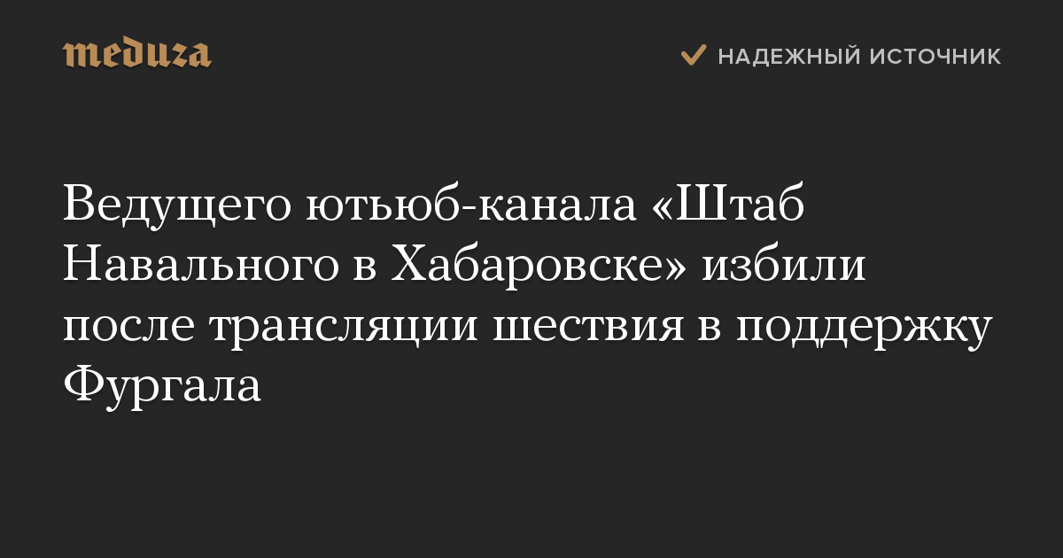 Ведущего ютьюб-канала «Штаб Навального в Хабаровске» избили после трансляции шествия в поддержку Фургала