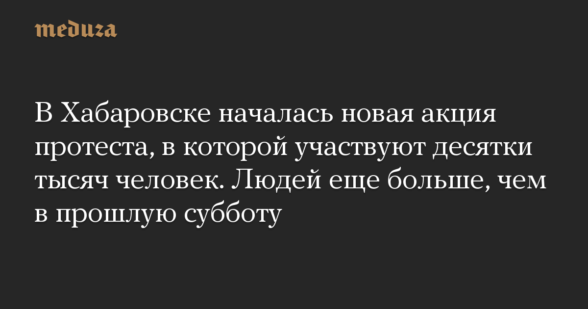 В Хабаровске началась новая акция протеста, в которой участвуют десятки тысяч человек. Людей еще больше, чем в прошлую субботу