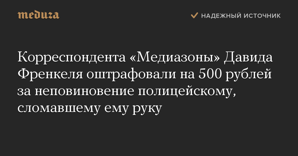 Корреспондента «Медиазоны» Давида Френкеля оштрафовали на 500 рублей за неповиновение полицейскому, сломавшему ему руку