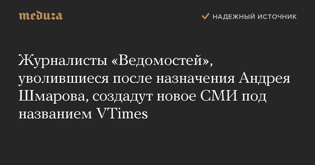 Журналисты «Ведомостей», уволившиеся после назначения Андрея Шмарова, создадут новое СМИ под названием VTimes