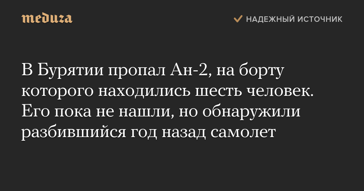В Бурятии пропал Ан-2, на борту которого находились шесть человек. Его пока не нашли, но обнаружили разбившийся год назад самолет