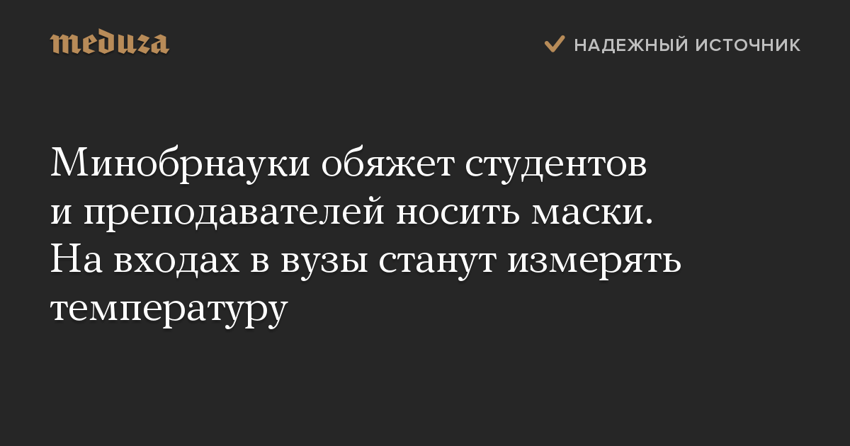 Минобрнауки обяжет студентов и преподавателей носить маски. На входах в вузы станут измерять температуру