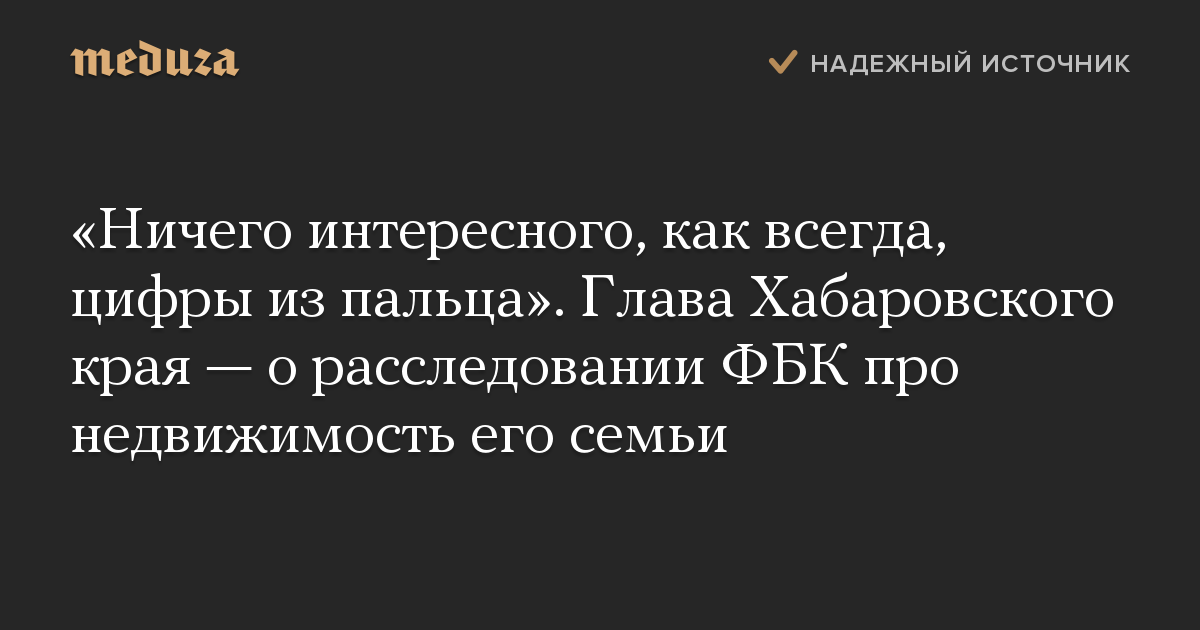 «Ничего интересного, как всегда, цифры из пальца». Глава Хабаровского края — о расследовании ФБК про недвижимость его семьи