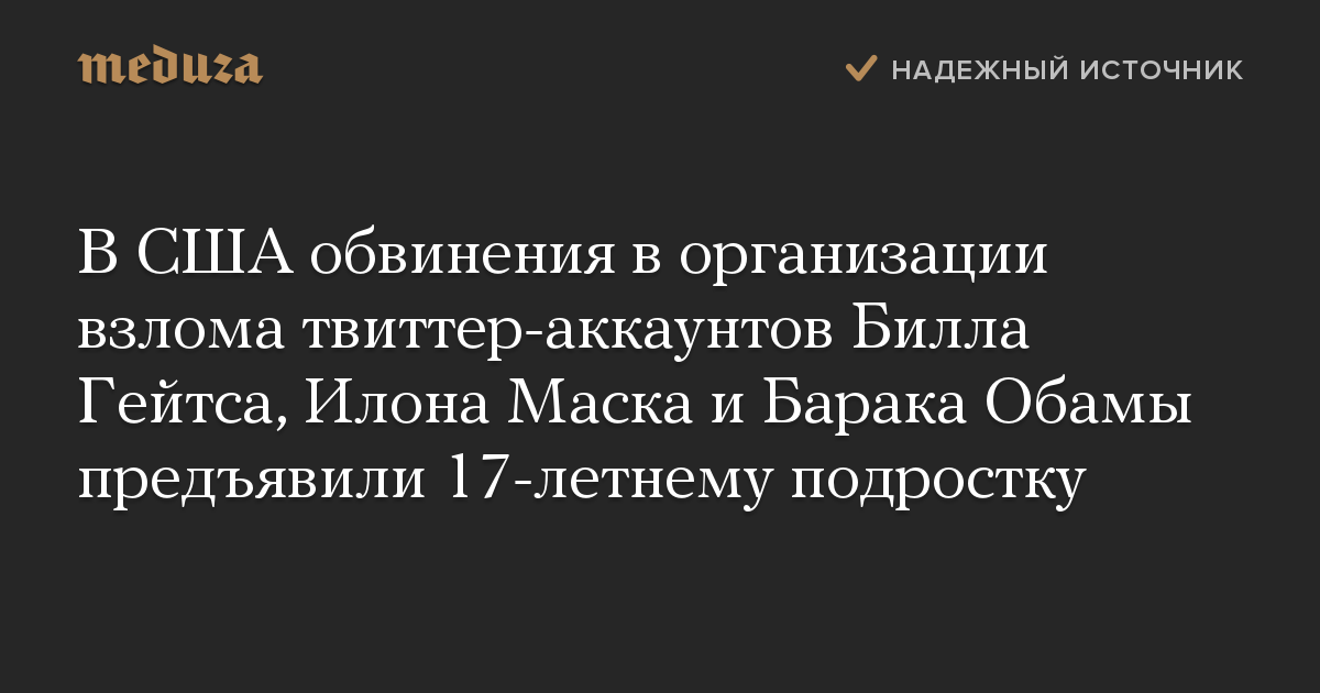 В США обвинения в организации взлома твиттер-аккаунтов Билла Гейтса, Илона Маска и Барака Обамы предъявили 17-летнему подростку