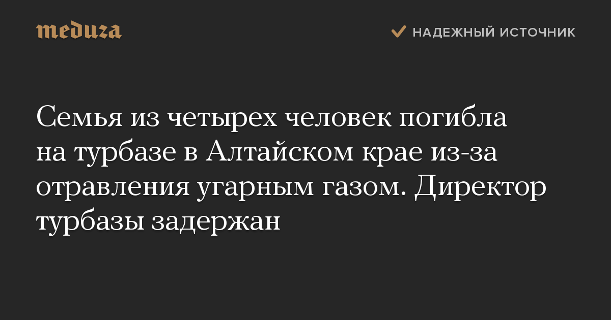 Семья из четырех человек погибла на турбазе в Алтайском крае из-за отравления угарным газом. Директор турбазы задержан