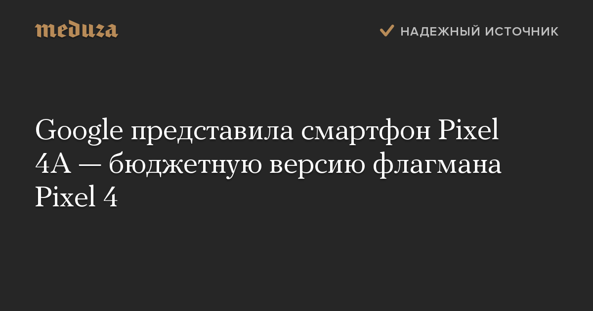 Компания Google представила смартфон Pixel 4A — бюджетную версию флагманского Pixel 4, вышедшего в 2019 году.