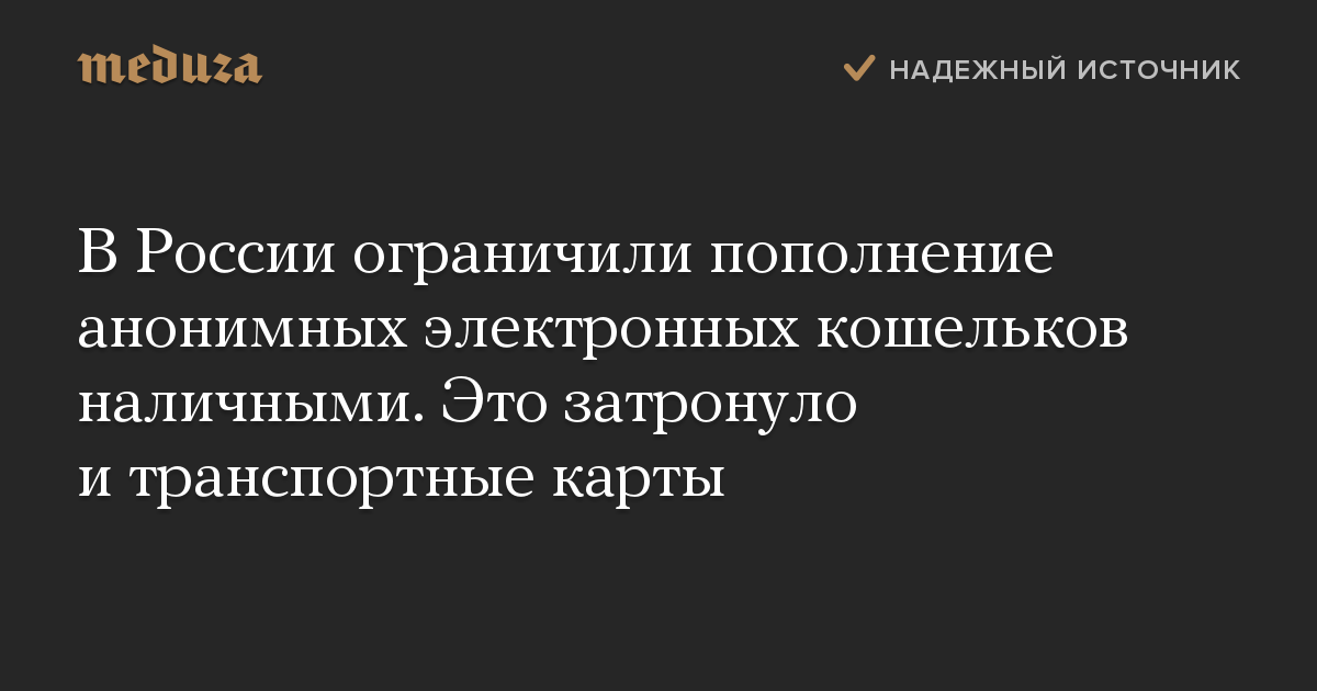 В России ограничили пополнение анонимных электронных кошельков наличными. Это затронуло и транспортные карты