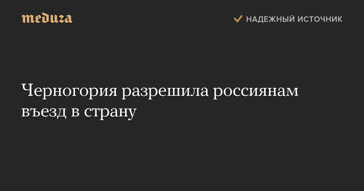 Черногория разрешила россиянам въезд в страну