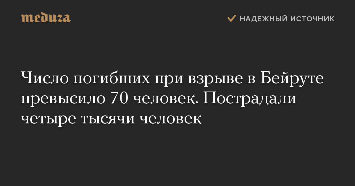Число погибших при взрыве в Бейруте превысило 70 человек. Пострадали четыре тысячи человек