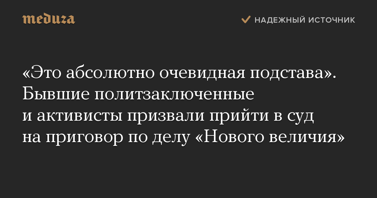 «Это абсолютно очевидная подстава». Бывшие политзаключенные и активисты призвали прийти в суд на приговор по делу «Нового величия»