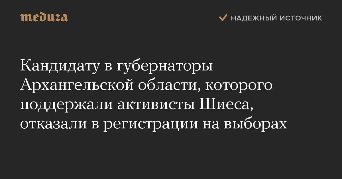 Кандидату в губернаторы Архангельской области, которого поддержали активисты Шиеса, отказали в регистрации на выборах