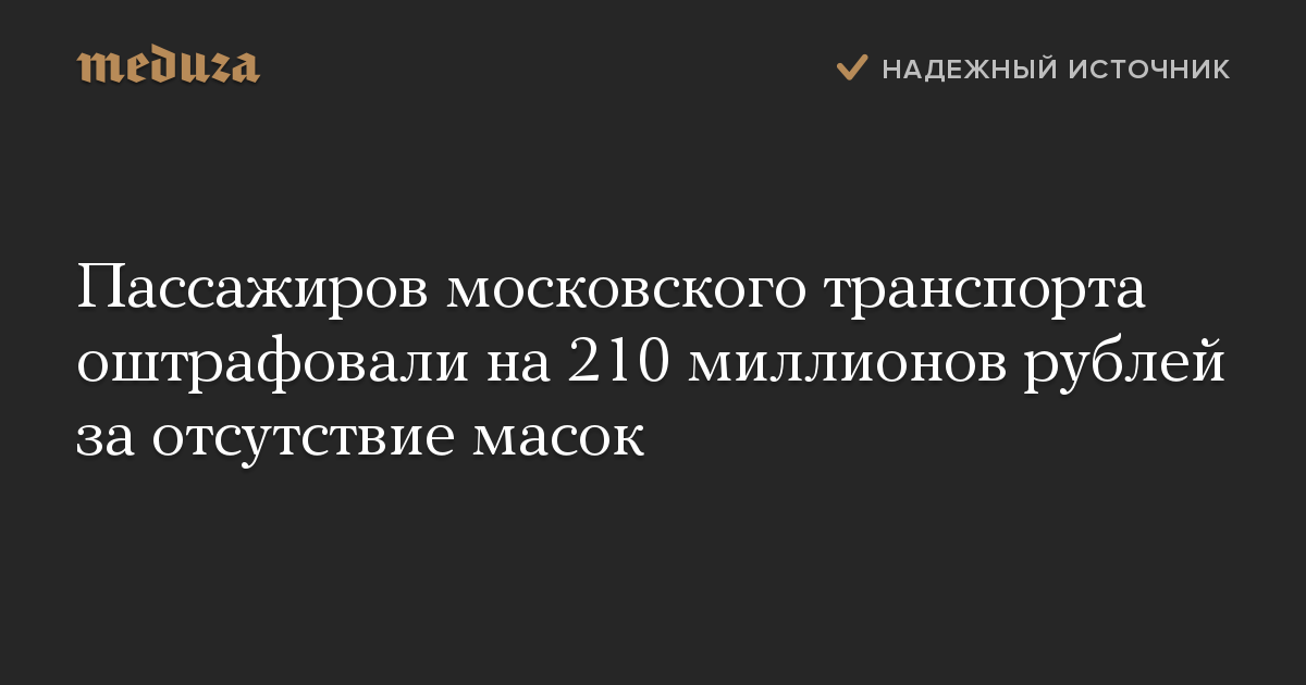Пассажиров московского транспорта оштрафовали на 210 миллионов рублей за отсутствие масок