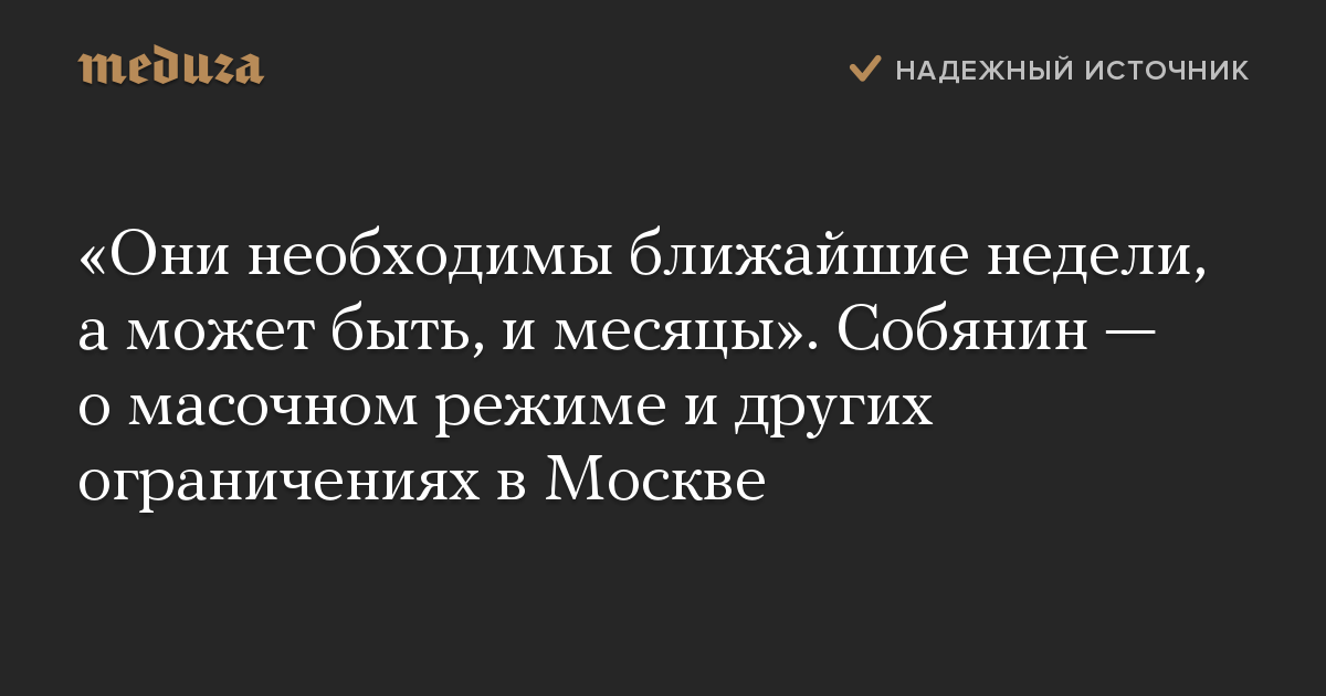 «Они необходимы ближайшие недели, а может быть, и месяцы». Собянин — о масочном режиме и других ограничениях в Москве