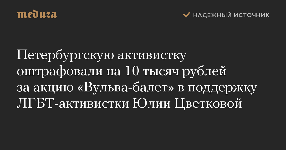 Петербургскую активистку оштрафовали на 10 тысяч рублей за акцию «Вульва-балет» в поддержку ЛГБТ-активистки Юлии Цветковой