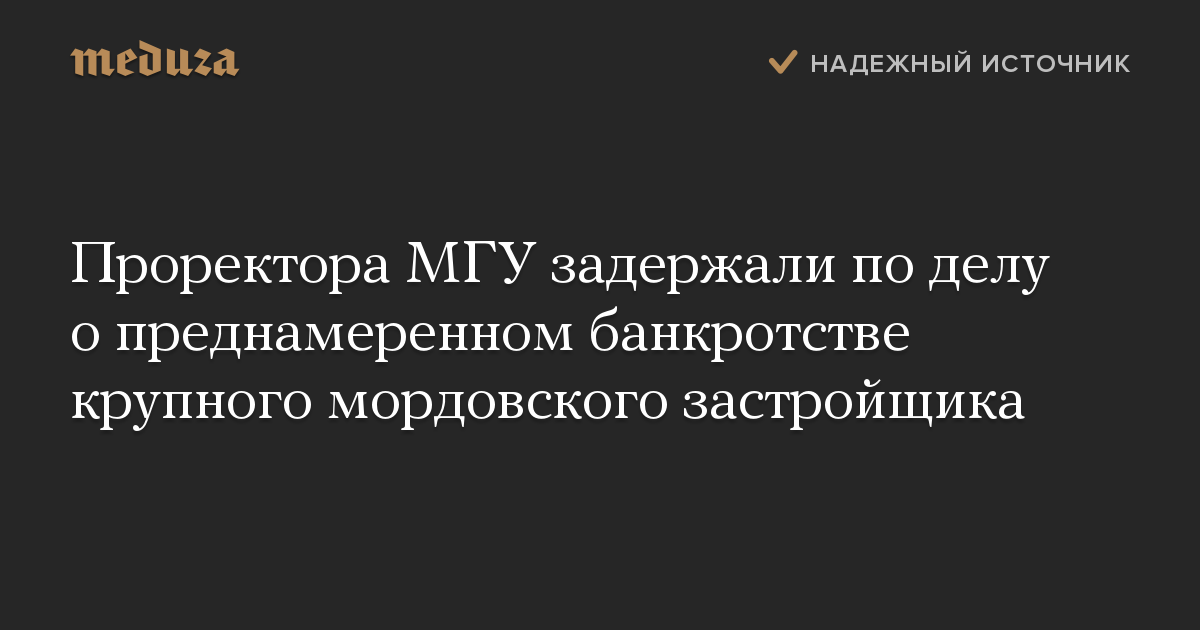 Проректора МГУ задержали по делу о преднамеренном банкротстве крупного мордовского застройщика
