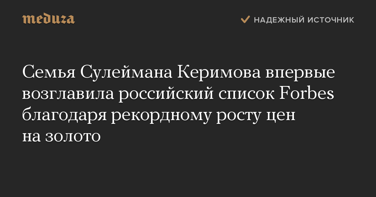 Семья Сулеймана Керимова впервые возглавила российский список Forbes благодаря рекордному росту цен на золото