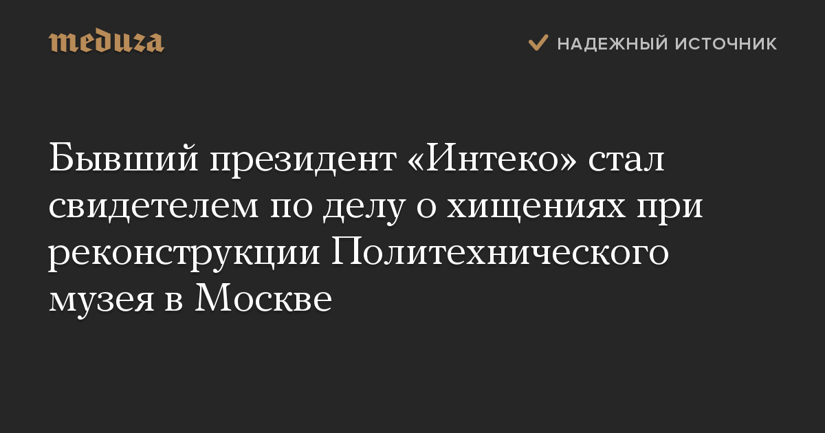 Бывший президент «Интеко» стал свидетелем по делу о хищениях при реконструкции Политехнического музея в Москве