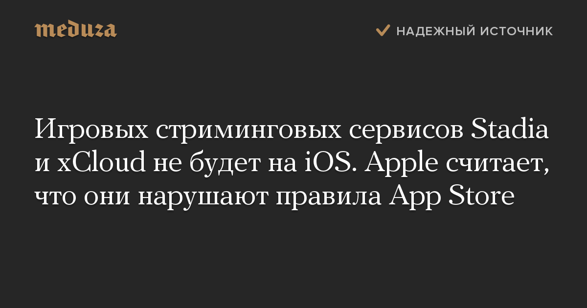 Игровых стриминговых сервисов Stadia и xCloud не будет на iOS. Apple считает, что они нарушают правила App Store