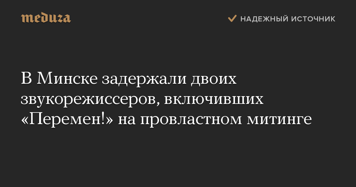 В Минске задержали двоих звукорежиссеров, включивших «Перемен!» на провластном митинге