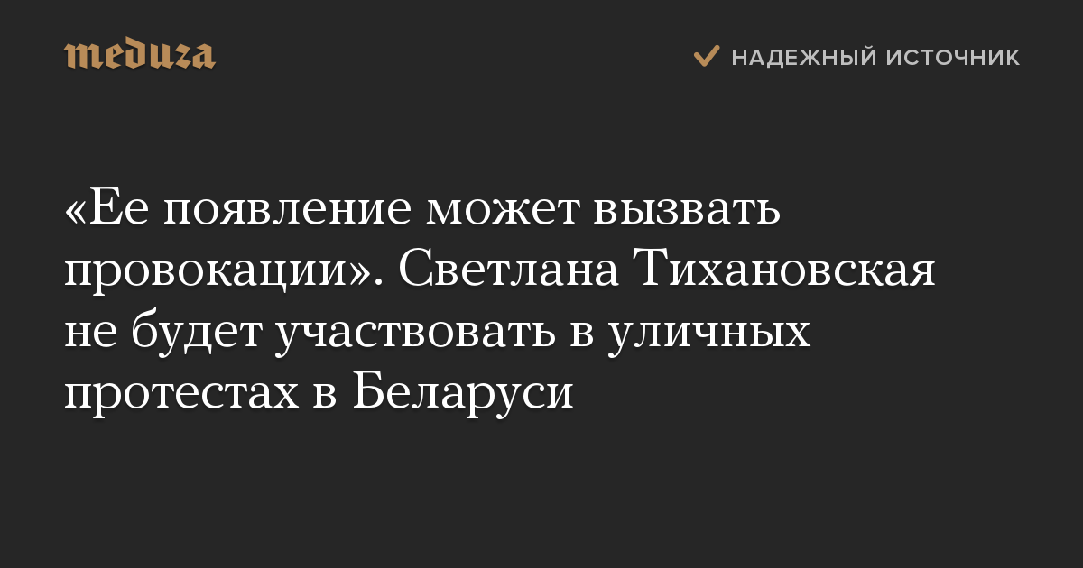 «Ее появление может вызвать провокации». Светлана Тихановская не будет участвовать в уличных протестах в Беларуси
