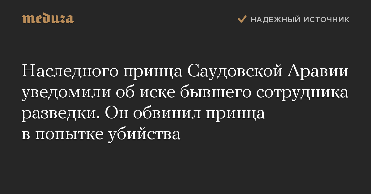 Наследного принца Саудовской Аравии уведомили об иске бывшего сотрудника разведки. Он обвинил принца в попытке убийства