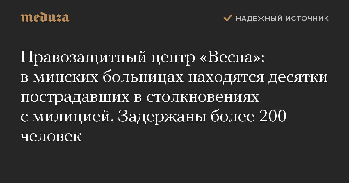 Правозащитный центр «Весна»: в минских больницах находятся десятки пострадавших в столкновениях с милицией. Задержаны более 200 человек