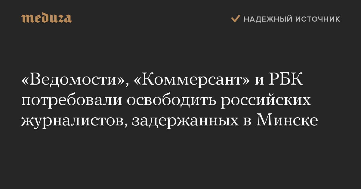 «Ведомости», «Коммерсант» и РБК потребовали освободить российских журналистов, задержанных в Минске