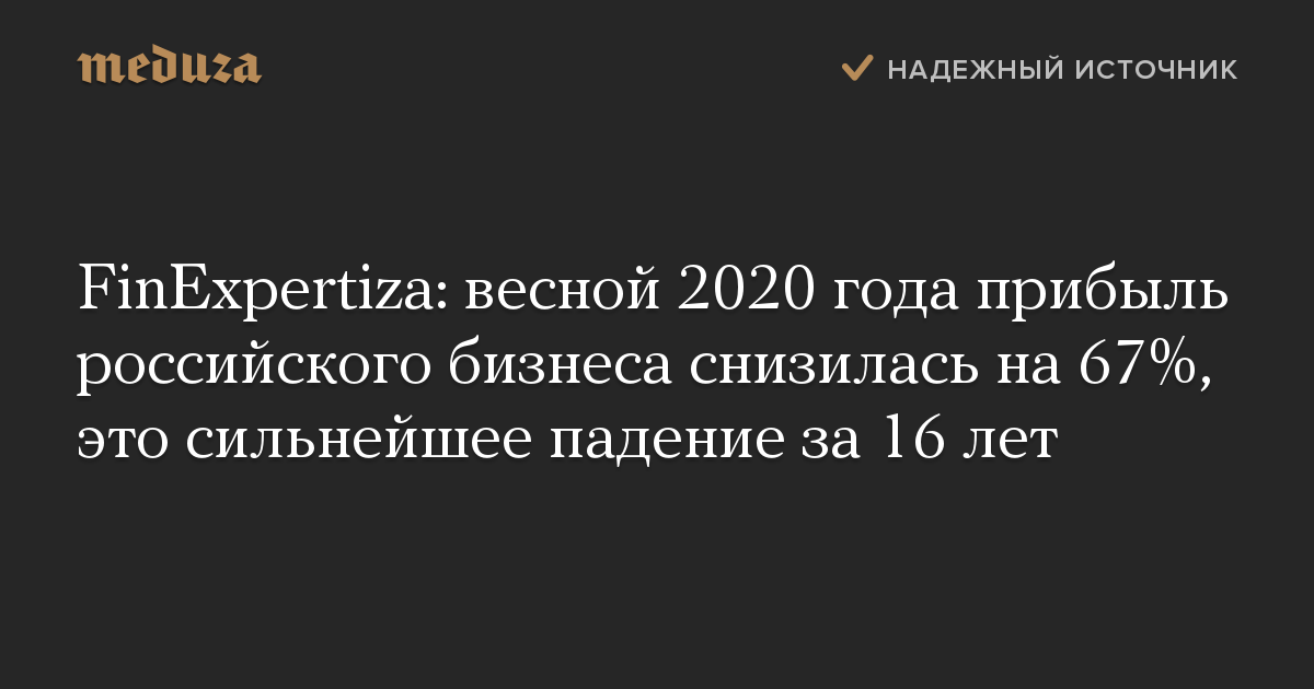 FinExpertiza: весной 2020 года прибыль российского бизнеса снизилась на 67%, это сильнейшее падение за 16 лет