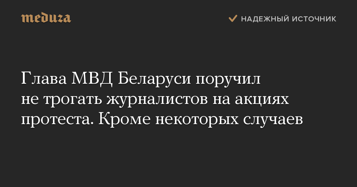 Глава МВД Беларуси поручил не трогать журналистов на акциях протеста. Кроме некоторых случаев