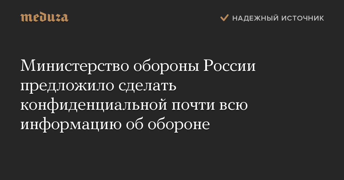 Министерство обороны России предложило сделать конфиденциальной почти всю информацию об обороне