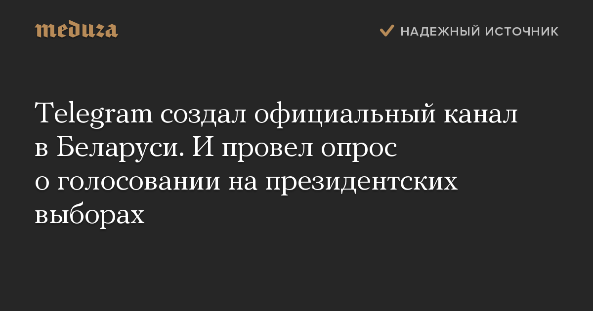 Telegram 15 августа создал официальный (с синей галочкой) канал в Беларуси. В тот же день в нем был опубликован анонимный опрос «За кого вы проголосовали на выборах президента Республики Беларусь?».